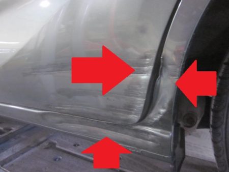 ▼ クオーターパネルとスライドドアの傷の状態です。
