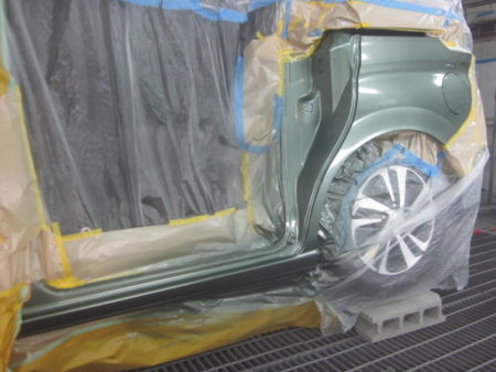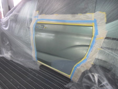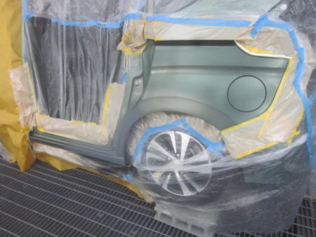 塗装面以外の車全体を専用のシートでマスキング行った後、塗装をしていきます。