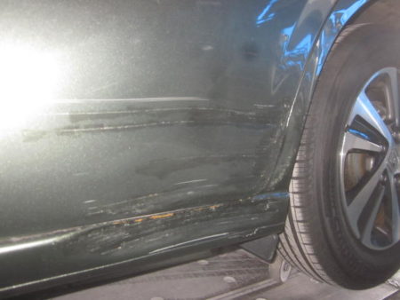 ▼ 左スライドドアとクオーターパネル、ステッププロテクターの傷の状況になります。