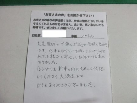 ※お客様のご感想の記事はこちらからご覧いただけます⇒ ホンダ・シャトル