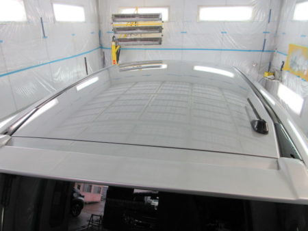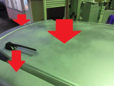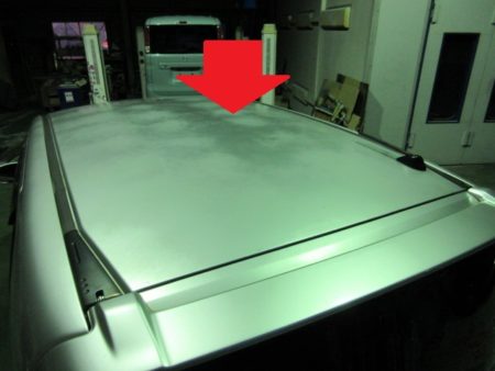 ▼ 塗装劣化がルーフ、ルーフサイドパネル、バックドア上部に発生している状況ですが、心配に及びません。綺麗に修復していきたいと思います。