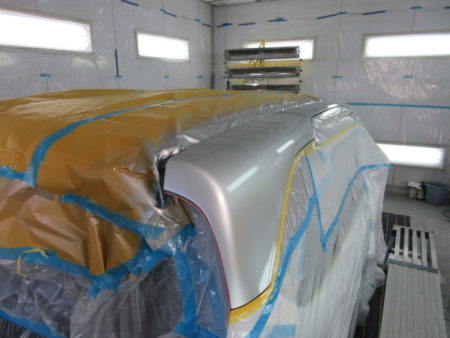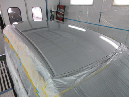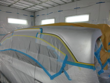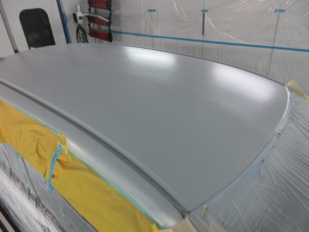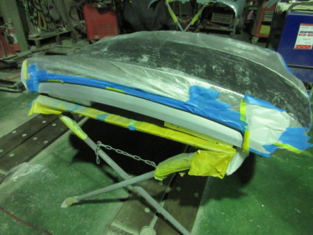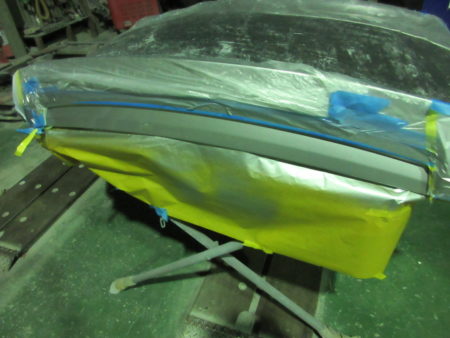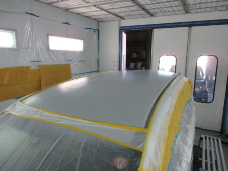 ▼ 補修完了後下地処理のサフェーサを塗布してから塗装を行います。