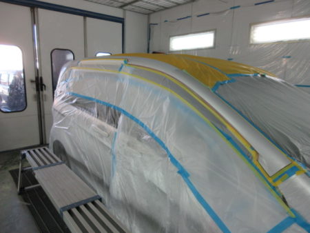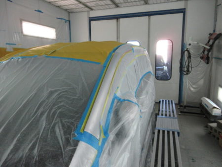 ▼ 塗装は塗装専用ブースにて行い、ゴミや埃の付着を防止します。