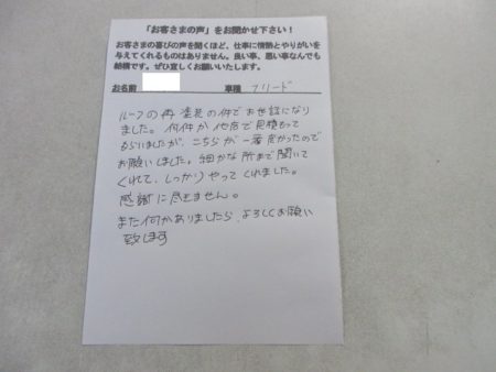※こちらのお客様の修理感想はこちら ⇒ホンダ・フリード