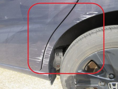 ▼ 左スライドドアとクオーターパネルに擦り傷がありました。