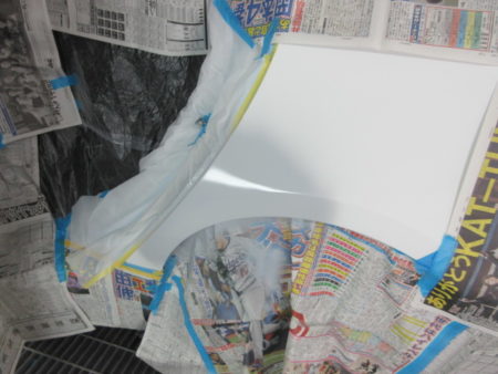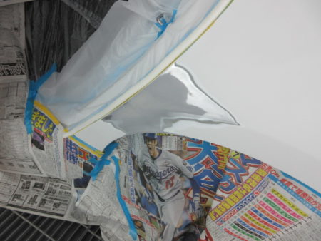 塗装面以外の塗料がかかってはまずい個所をマスキングで養生します。