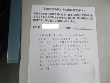 ※ こちらのお客様の修理感想はこちら ⇒ボルボ・V40