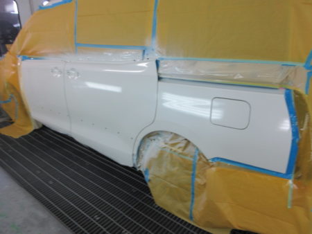 ▼ フロントドアから、リアドア、クオーターパネルの塗装をします。