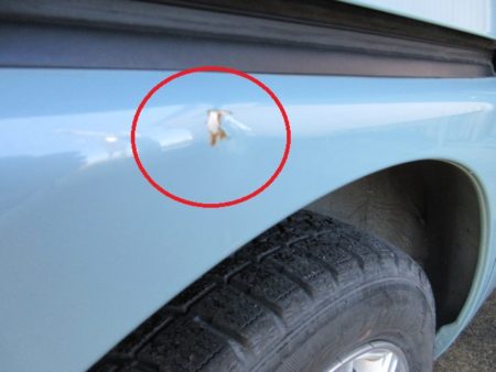 ▼ 右クオーターパネルに擦り傷があり、浮き錆びが発生している状況でした。