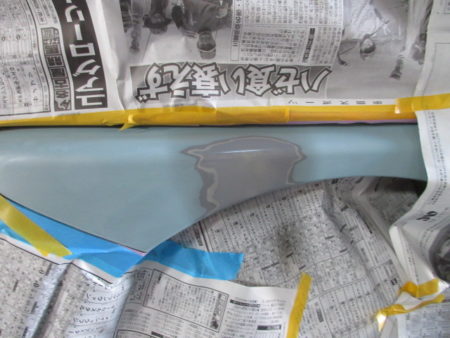 ▼ パテ修正後に、下地処理の為のサフェーサを塗布します。