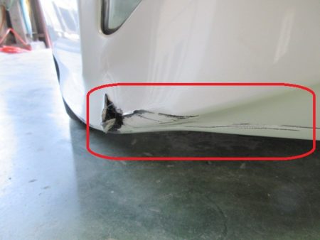 フロントバンパーの損傷ですが、交換ではなく修理での作業依頼となります。