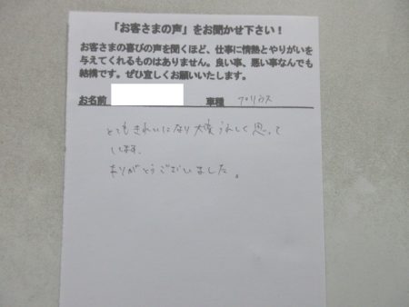 ※ こちらのお客様の修理感想はこちら ⇒ トヨタ・プリウス